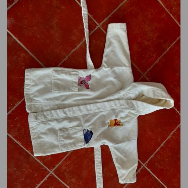 Prodám dětský froté župan s obrázky Medvídka Pú, zn. Next, vel. 92, pásek je přišitý (nepadá, neztrácí