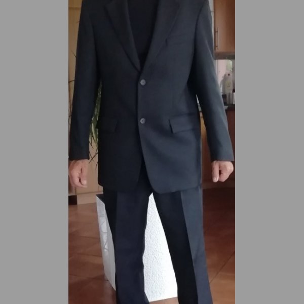 Pánský společenský oblek na postavu výšky 182-185cm,delka kalhot 105 cm, pas 90 cm, délka rukávu saka od ramene 65 cm, od podlaží 45 cm, obvod přes prsa 110 cm, k obleku značková košile