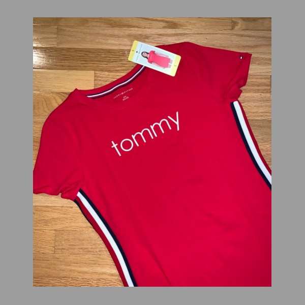Nové, originál šaty Tommy Hilfiger s visačkou, v červené barvě. Dovoz z USA. Materiál 95% bavlna, 5% elastane. Nápis tommy je vyšitý a po bocích jsou logo pásky, které opticky